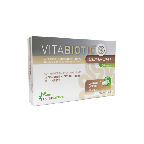 Notre formule enrichie en souches microbiotiques et en Mauve permet de réguler le microbiote et d’améliorer rapidement le confort digestif. La mauve est reconnue pour favoriser un bon transit et contribuer à améliorer le confort digestif.